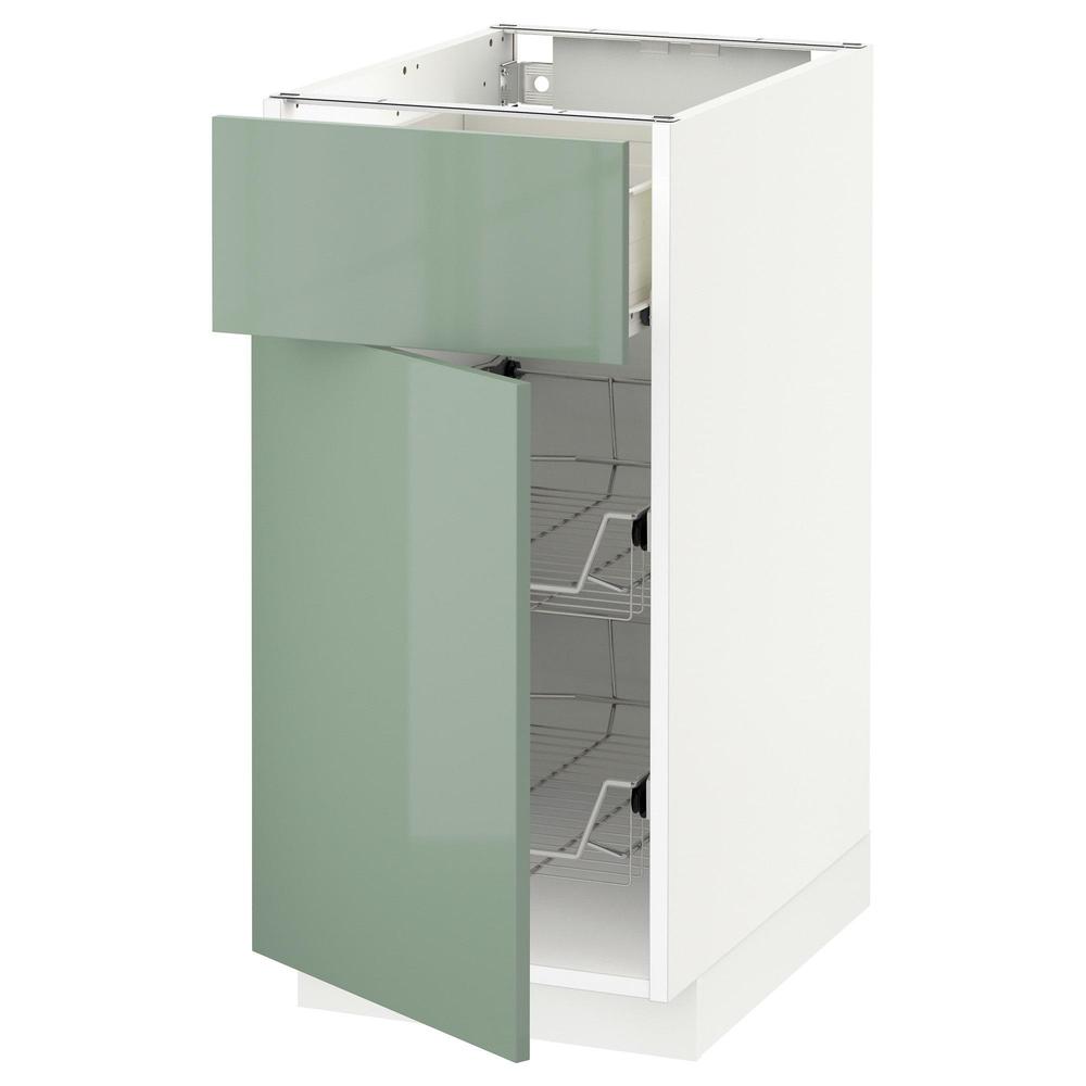 МЕТОД / ФОРВАРА Напольн шкаф с пров корз/ящ/дверью - белый, Калларп глянцевый светло-зеленый, 40x60 см