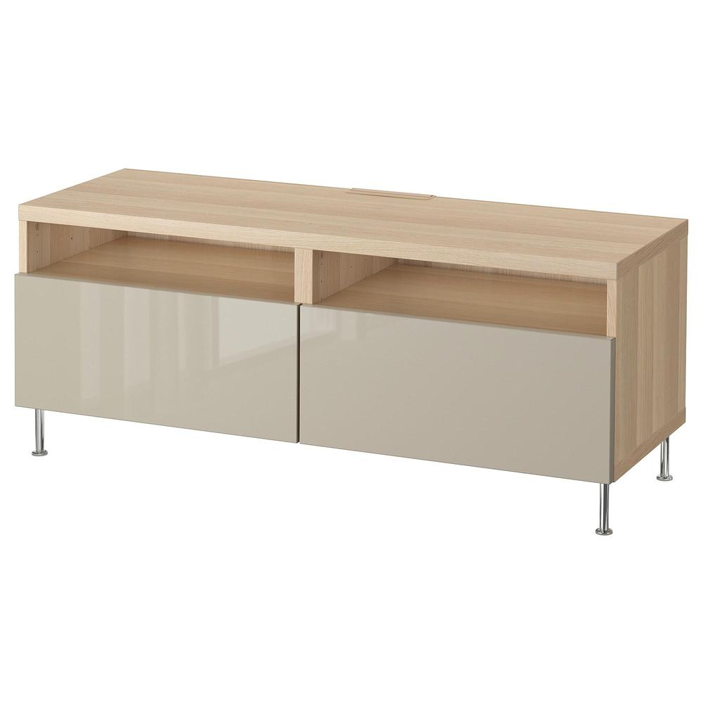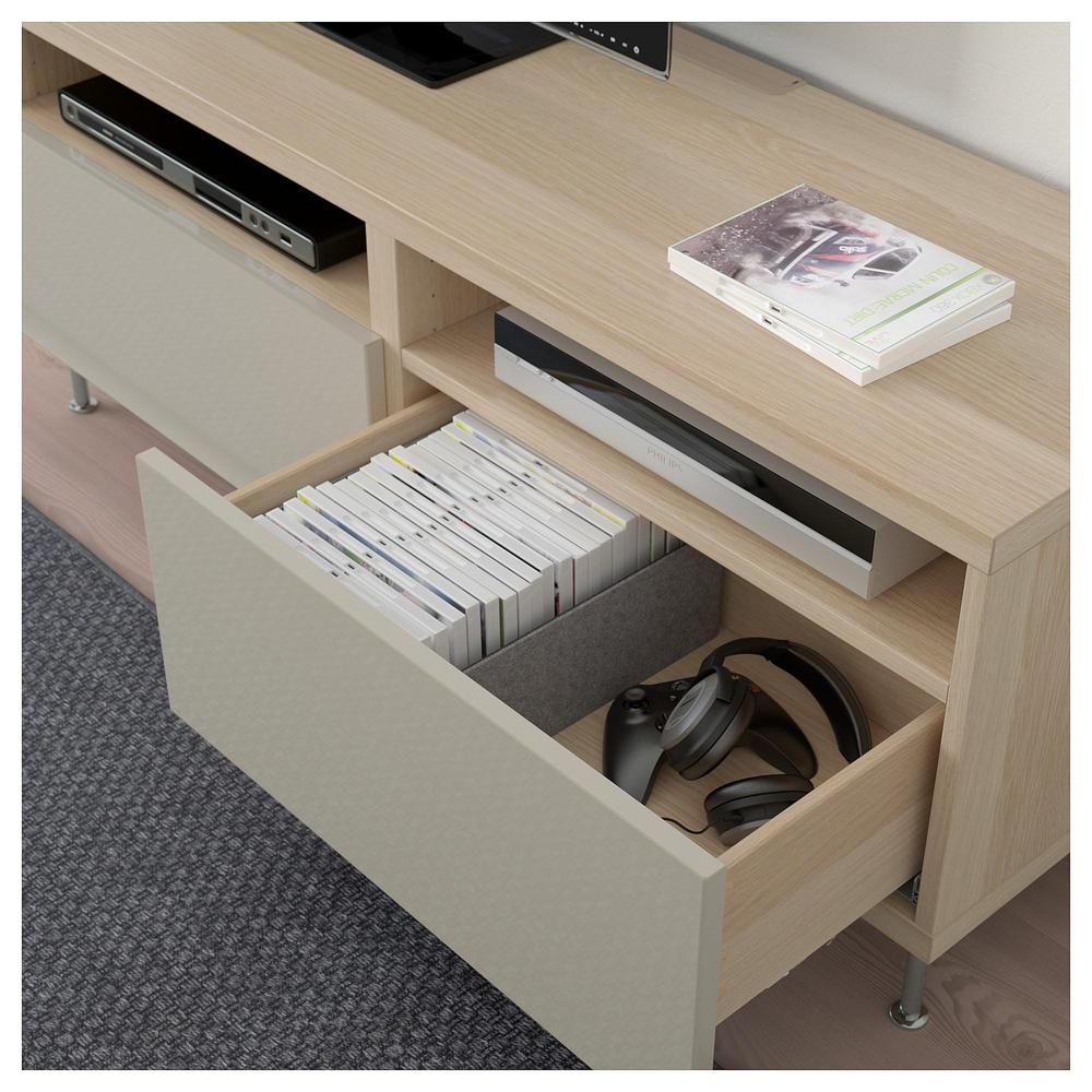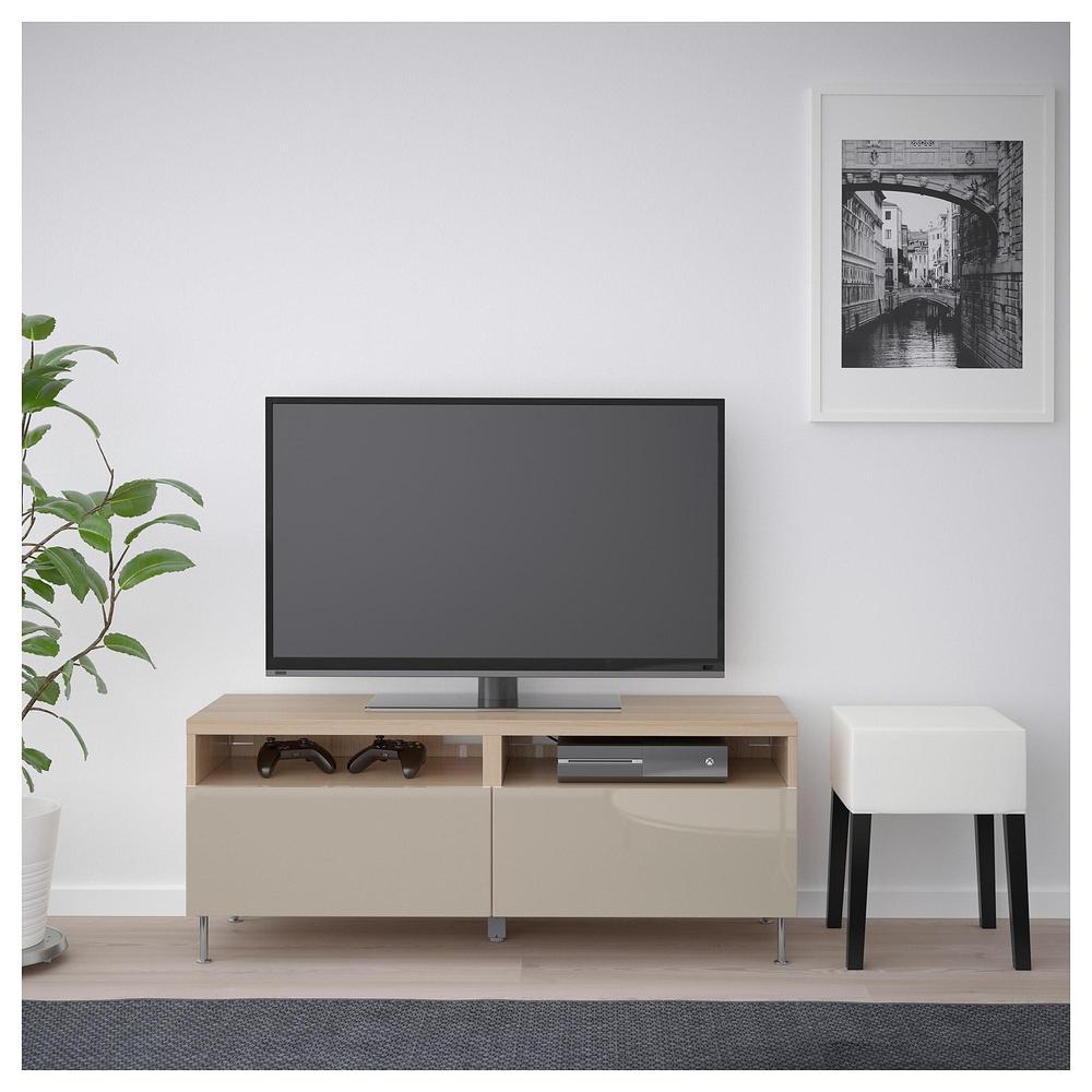 БЕСТО Тумба д/ТВ с ящиками - под беленый дуб глянцевый/бежевый, направляющие ящика, плавно закр