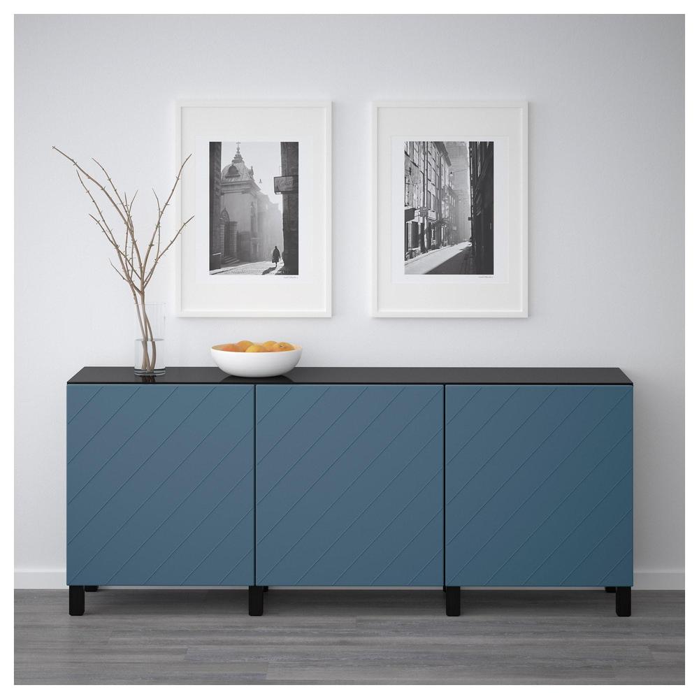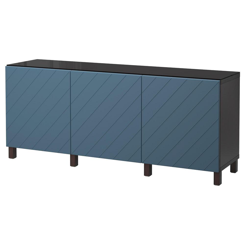 БЕСТО Комбинация для хранения с дверцами - черно-коричневый/Халлставик темно-синий