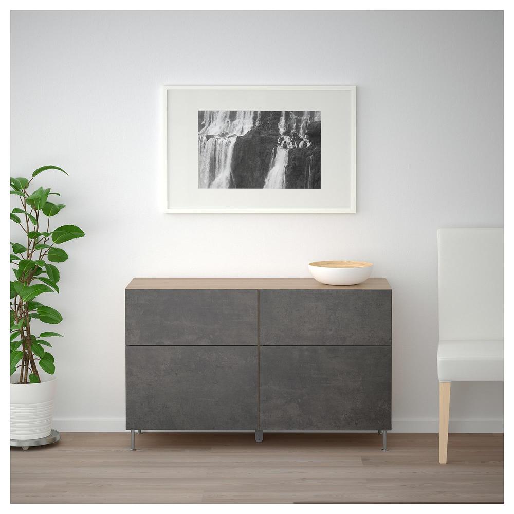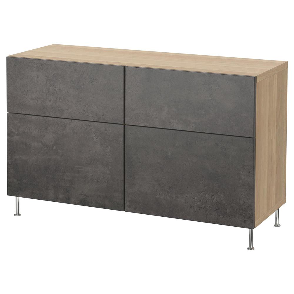 БЕСТО Комб для хран с дверц/ящ - под беленый дуб/темно-серый под бетон, направляющие ящика, плавно закр