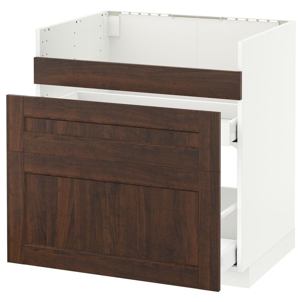 МЕТОД Напол шк д/мойки ХАВСЕН/3фасада/2ящ - белый, Эдсерум под дерево коричневый, 80x60 см