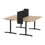 БЕКАНТ Углов письм стол лев/трансф - дубовый шпон, беленый/черный