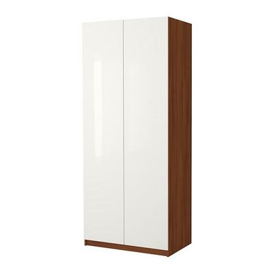 ПАКС Гардероб 2-дверный - Фардаль глянцевый белый, классический коричневый, 100x60x236 см, плавно закрывающиеся петли