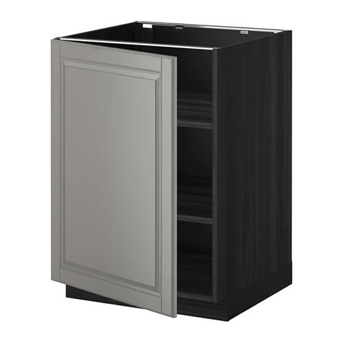МЕТОД Напольный шкаф с полками - под дерево черный, Будбин серый, 60x60 см