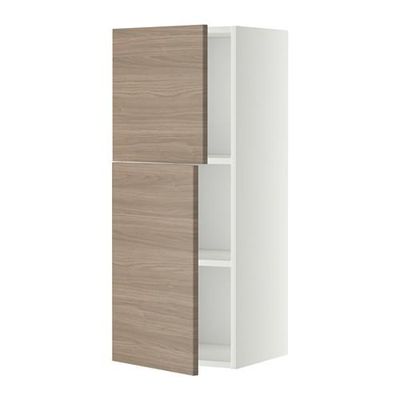 МЕТОД Навесной шкаф с полками/2дверцы - 40x100 см, Брокхульт под грецкий орех светло-серый, белый