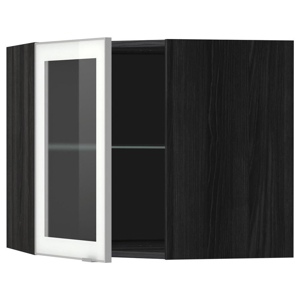МЕТОД Углов навесн шк с полками/сткл дв - под дерево черный, Ютис матовое стекло/алюминий, 68x60 см