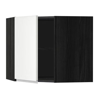 МЕТОД Угловой навесной шкаф с полками - 68x60 см, Нодста белый/алюминий, под дерево черный