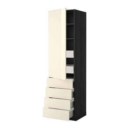 МЕТОД / ФОРВАРА Выс шкаф с плк/6 ящк/ дверц/4 фрнт - 60x60x220 см, Рингульт глянцевый кремовый, под дерево черный