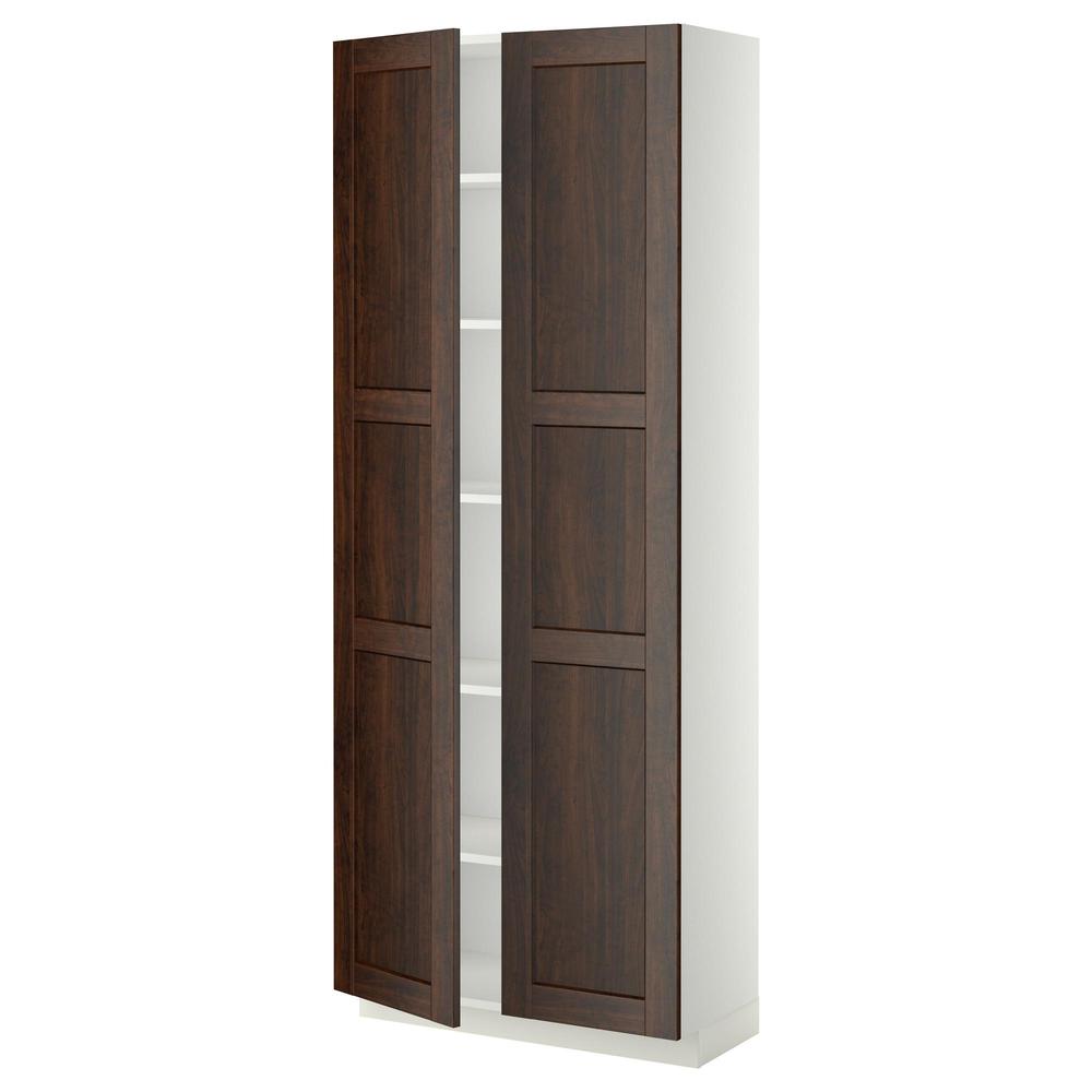 МЕТОД Высок шкаф с полками - белый, Эдсерум под дерево коричневый, 80x37x200 см