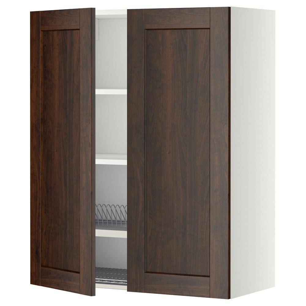 МЕТОД Навесной шкаф с посуд суш/2 дврц - белый, Эдсерум под дерево коричневый, 80x100 см