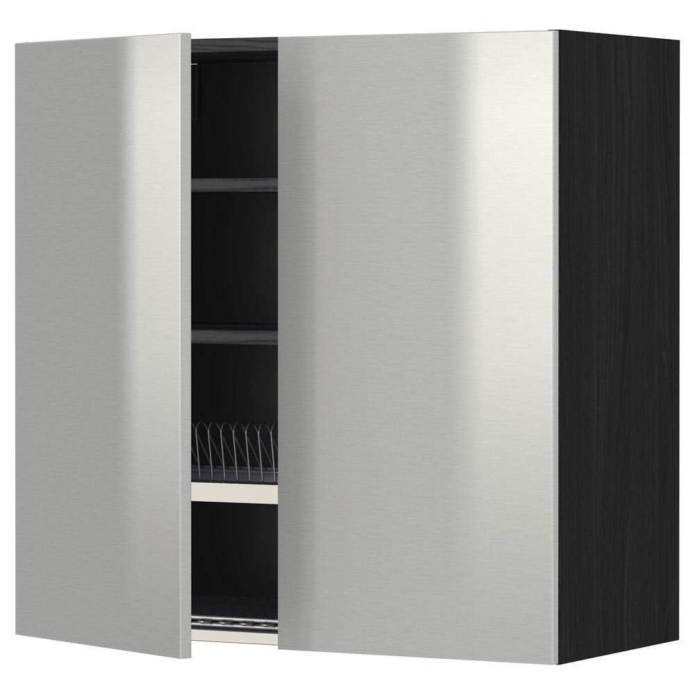 МЕТОД Навесной шкаф с посуд суш/2 дврц - под дерево черный, Гревста нержавеющ сталь, 80x80 см
