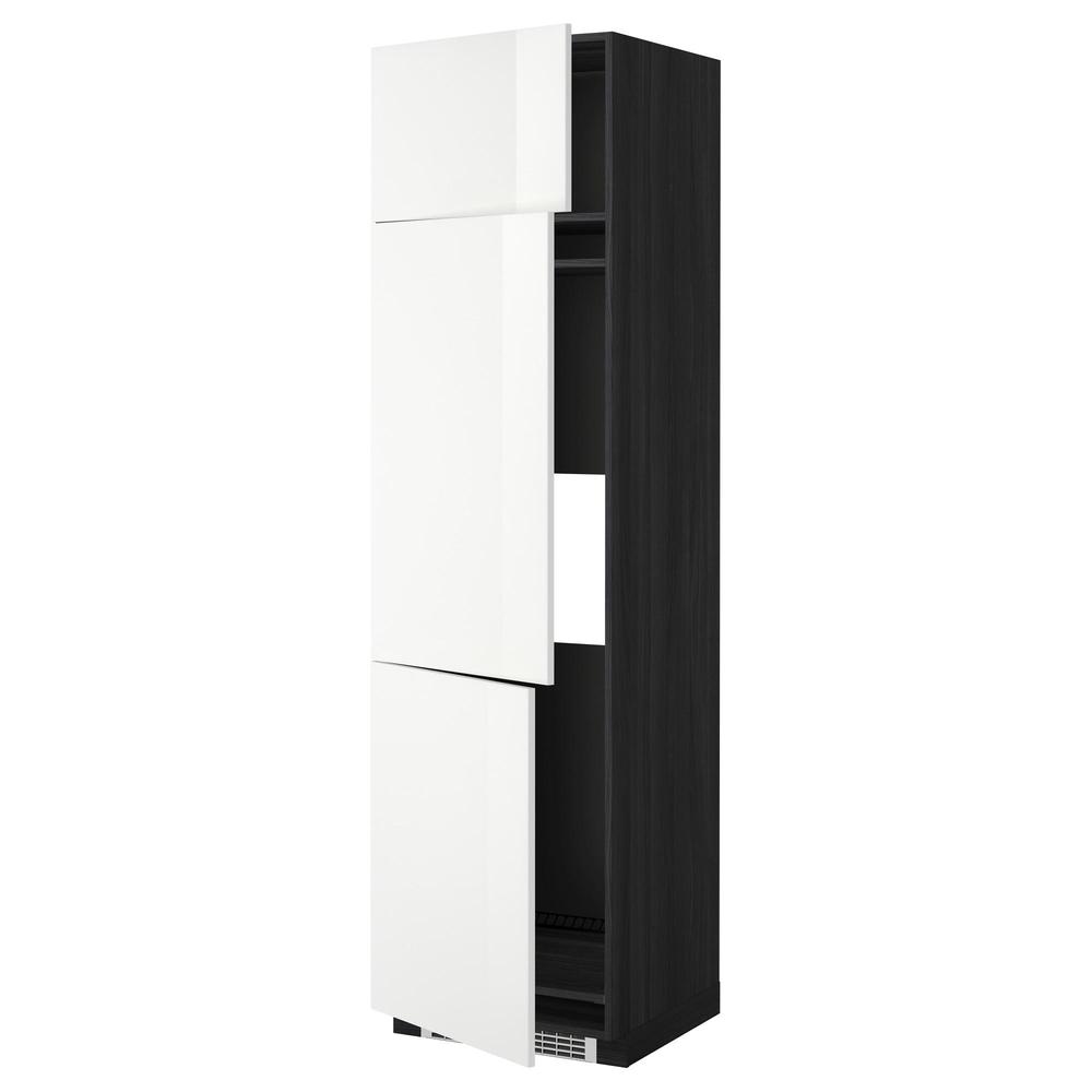 МЕТОД Выс шкаф для хол/мороз с 3 дверями - под дерево черный, Рингульт глянцевый белый, 60x60x220 см