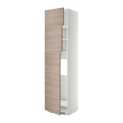 МЕТОД Высокий шкаф д/холодильника/3дверцы - Брокхульт под грецкий орех светло-серый, белый