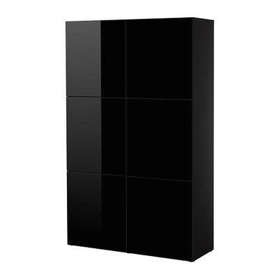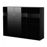 БЕСТО Комбинация для хранения с дверцами - черно-коричневый/глянцевый черный