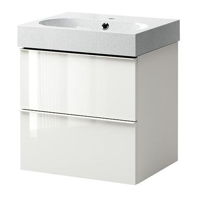 ГОДМОРГОН/БРОВИКЕН Шкаф для раковины с 2 ящ - глянцевый белый/светло-серый