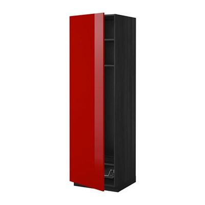 МЕТОД Выс шкаф с полками/проволоч корзин - 60x60x200 см, Рингульт глянцевый красный, под дерево черный