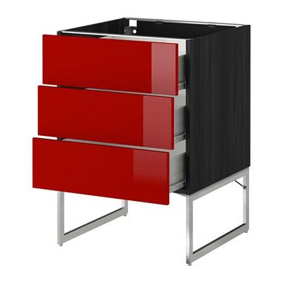 МЕТОД / ФОРВАРА Нплн шк 3 фрнт/3 средн ящика - 60x60x60 см, Рингульт глянцевый красный, под дерево черный