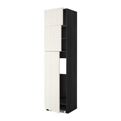 МЕТОД Высокий шкаф д/холодильника/3дверцы - Росдаль белый ясень, под дерево черный