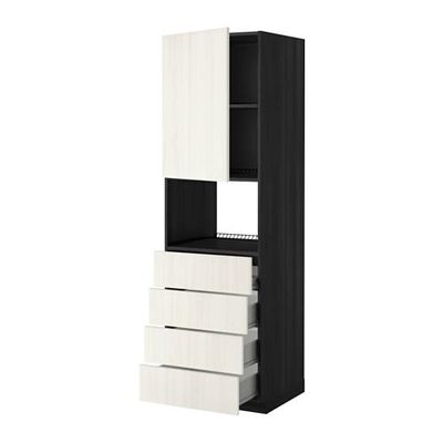 МЕТОД / ФОРВАРА Высок шкаф д/духовки/дверца/4ящика - 60x60x200 см, Росдаль белый ясень, под дерево черный