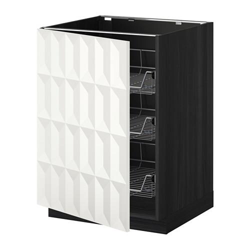 МЕТОД Напольный шкаф с проволочн ящиками - под дерево черный, Гэррестад белый, 60x60 см