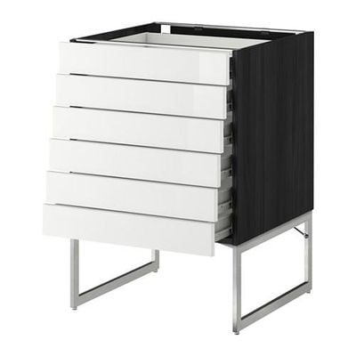 МЕТОД / ФОРВАРА Напольн шкаф 6фронт пнл/6 низ ящ - 60x60x60 см, Рингульт глянцевый белый, под дерево черный