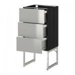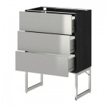 МЕТОД / ФОРВАРА Нплн шк 3 фрнт/3 средн ящика - 80x60x60 см, Гревста нержавеющ сталь, под дерево черный