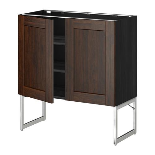МЕТОД Напол шкаф с полками/2двери - под дерево черный, Эдсерум под дерево коричневый, 80x37x60 см