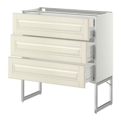 МЕТОД / ФОРВАРА Напольн шкаф 3фронт пнл/2низ/2ср ящ - 80x37x60 см, Будбин белый с оттенком, белый