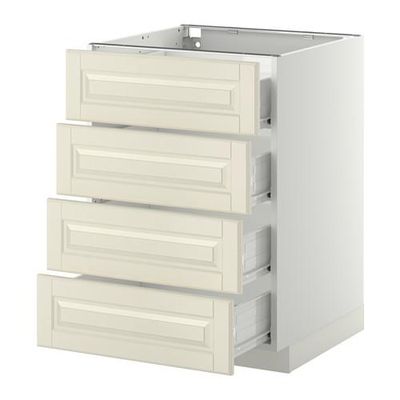МЕТОД / ФОРВАРА Напольн шкаф 4 фронт панели/4 ящика - 60x60 см, Будбин белый с оттенком, белый