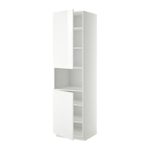 МЕТОД Выс шкаф д/СВЧ/2 дверцы/полки - белый, Рингульт глянцевый белый, 60x60x220 см