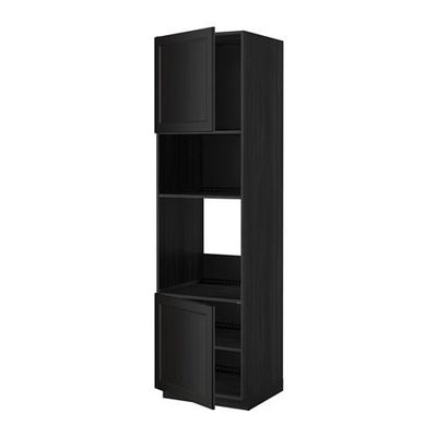 МЕТОД Выс шкаф д/духовки/СВЧ/2 дв/полки - 60x60x220 см, Лаксарби черно-коричневый, под дерево черный