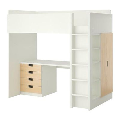 СТУВА Кровать-чердак/4 ящика/2 дверцы - белый/береза