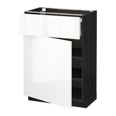 МЕТОД / ФОРВАРА Напольный шкаф с ящиком/дверью - 60x37 см, Рингульт глянцевый белый, под дерево черный