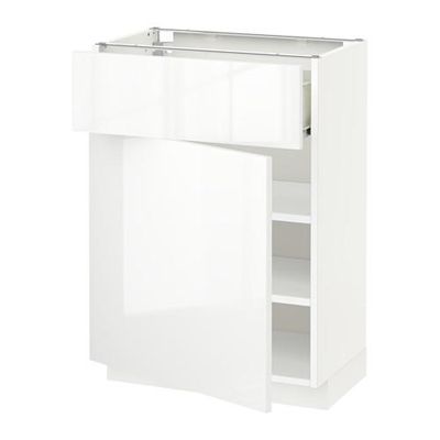 МЕТОД / ФОРВАРА Напольный шкаф с ящиком/дверью - 60x37 см, Рингульт глянцевый белый, белый
