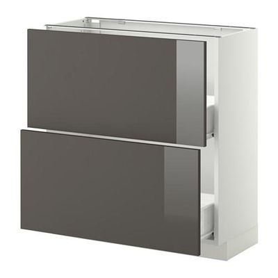 МЕТОД / ФОРВАРА Напольный шкаф с 2 ящиками - 80x37 см, Рингульт глянцевый серый, белый