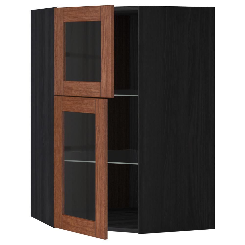 МЕТОД Углов навесной шкаф+полки/2 сткл дв - под дерево черный, Филипстад коричневый