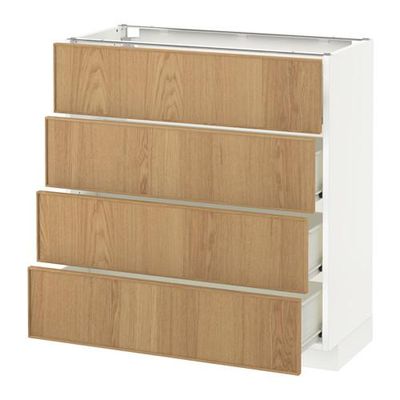 МЕТОД / ФОРВАРА Напольн шкаф 4 фронт панели/4 ящика - 80x37 см, Экестад дуб, белый
