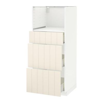 МЕТОД / ФОРВАРА Высокий шкаф д/СВЧ с 3 ящиками - Хитарп белый с оттенком, белый