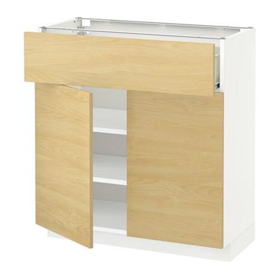 МЕТОД / ФОРВАРА Напольный шкаф+ящик/2дверцы - 80x37 см, Тингсрид под березу, белый