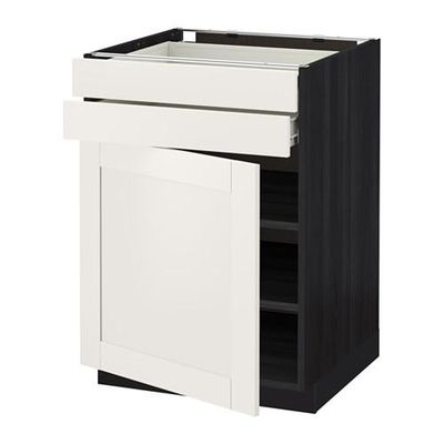 МЕТОД / ФОРВАРА Напольный шкаф с дверцей/2 ящиками - 60x60 см, Сэведаль белый, под дерево черный