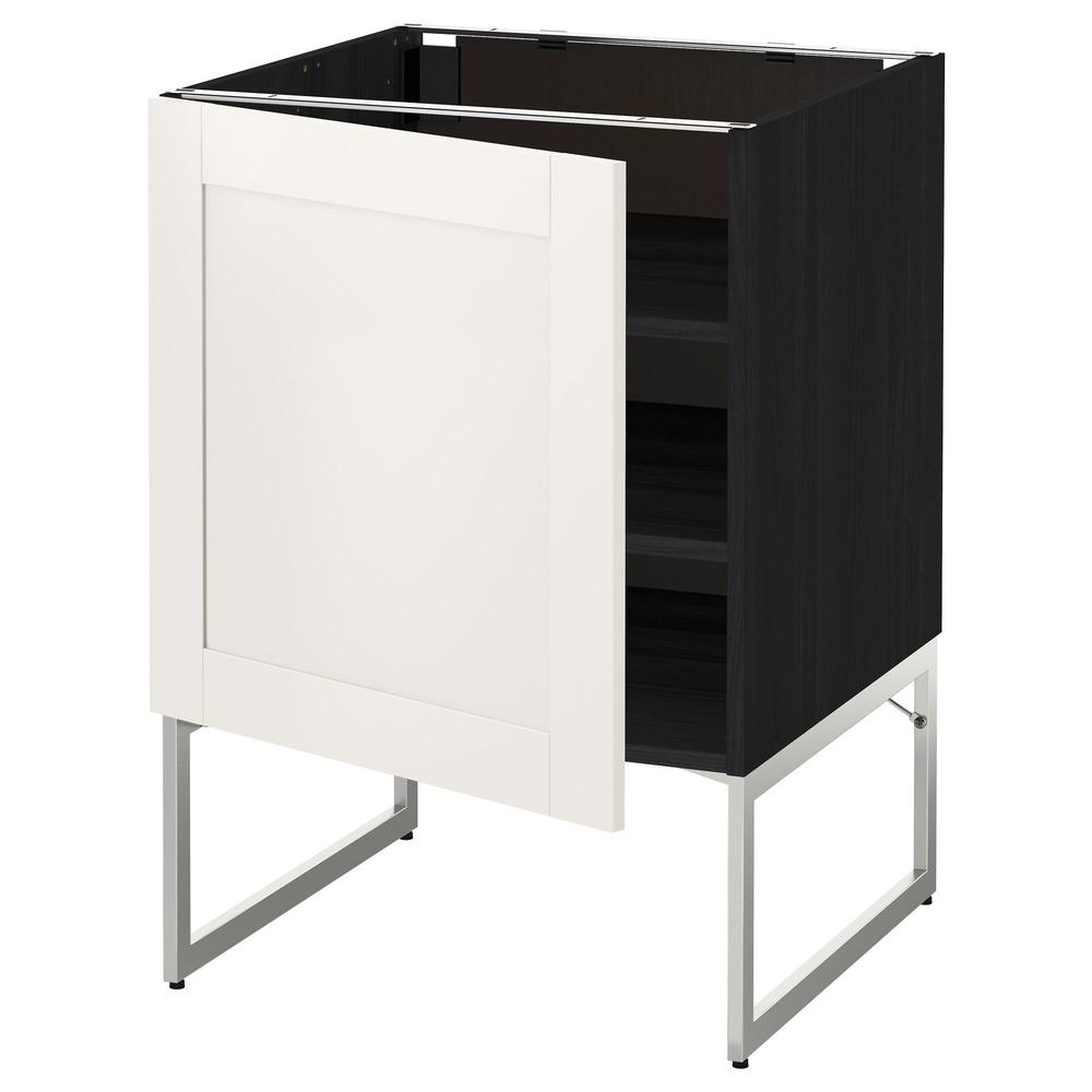 МЕТОД Напольный шкаф с полками - под дерево черный, Сэведаль белый, 60x60x60 см