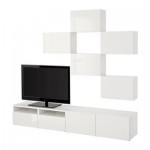 БЕСТО Шкаф для ТВ, комбинация - белый/Сельсвикен глянцевый/серый, направляющие ящика, плавно закр