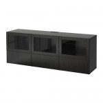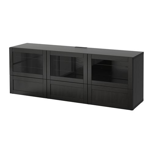 БЕСТО Тумба под ТВ, с дверцами и ящиками - Ханвикен/Синдвик черно-коричневый прозрачное стекло, направляющие ящика,нажимные