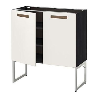 МЕТОД Напол шкаф с полками/2двери - 80x37x60 см, Мэрста белый, под дерево черный