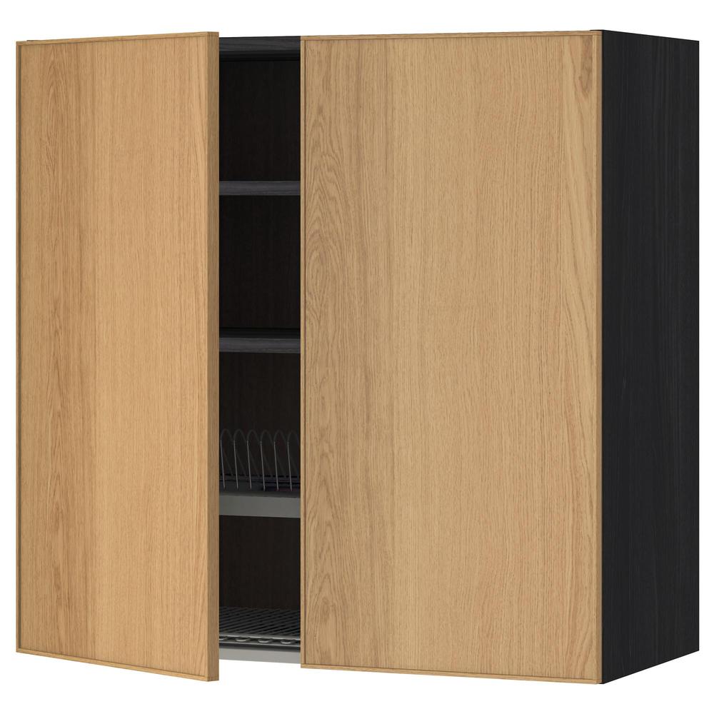 МЕТОД Навесной шкаф с посуд суш/2 дврц - под дерево черный, Экестад дуб, 80x80 см