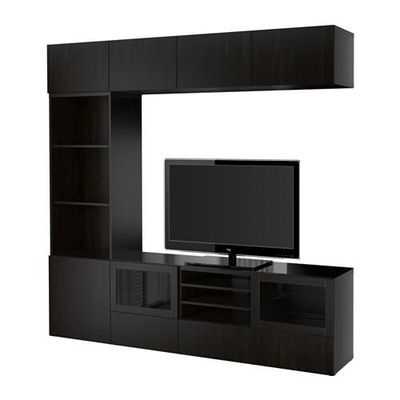 БЕСТО Шкаф для ТВ, комбин/стеклян дверцы - направляющие ящика,нажимные, Лаппвикен/Синдвик черно-коричневый прозрачное стекло