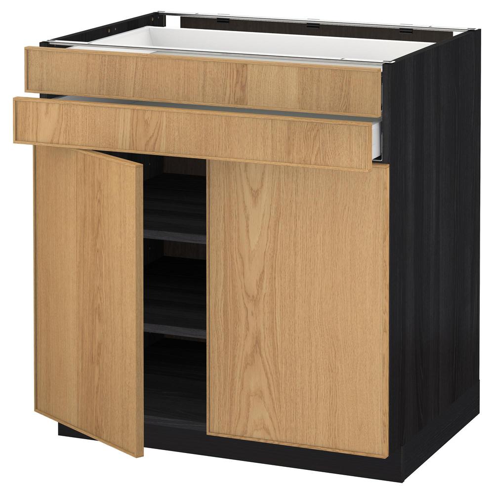 МЕТОД / МАКСИМЕРА Напольный шкаф/2дверцы/2ящика - под дерево черный, Экестад дуб, 80x60 см