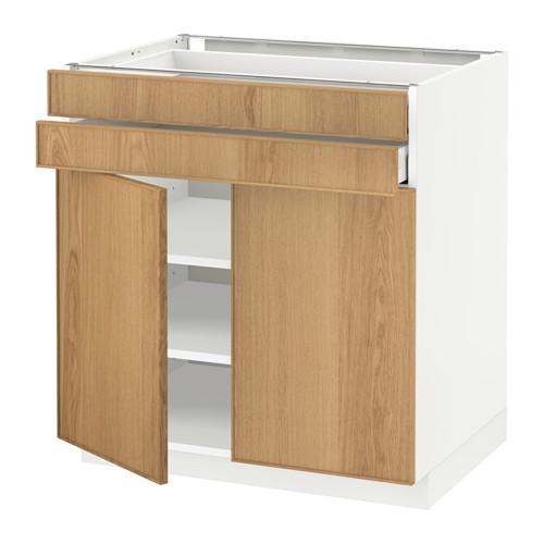 МЕТОД / МАКСИМЕРА Напольный шкаф/2дверцы/2ящика - белый, Экестад дуб, 80x60 см