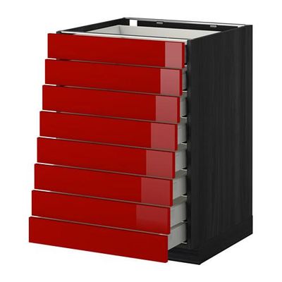МЕТОД / МАКСИМЕРА Наполн шкаф 8 фронт/8 низк ящиков - 60x60 см, Рингульт глянцевый красный, под дерево черный