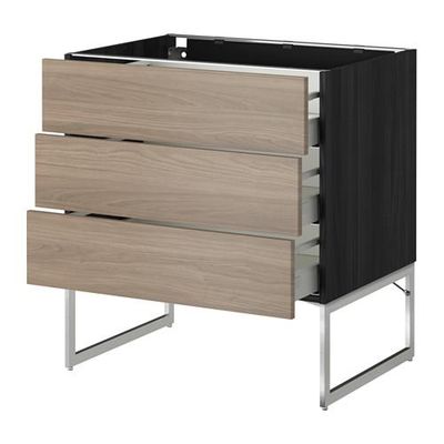 МЕТОД / МАКСИМЕРА Нплн шк 3 фрнт/3 средн ящика - 80x60x60 см, Брокхульт под грецкий орех светло-серый, под дерево черный